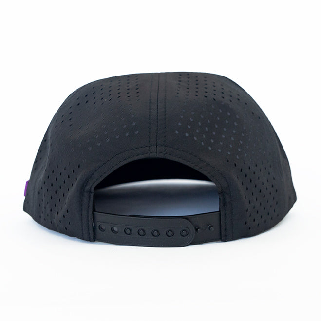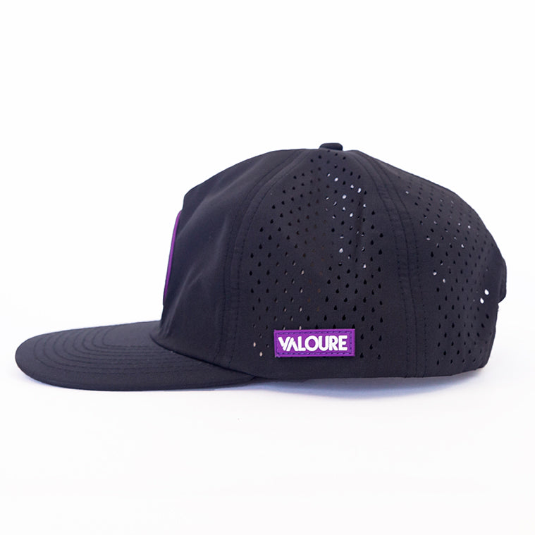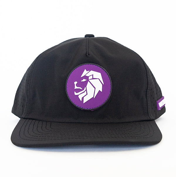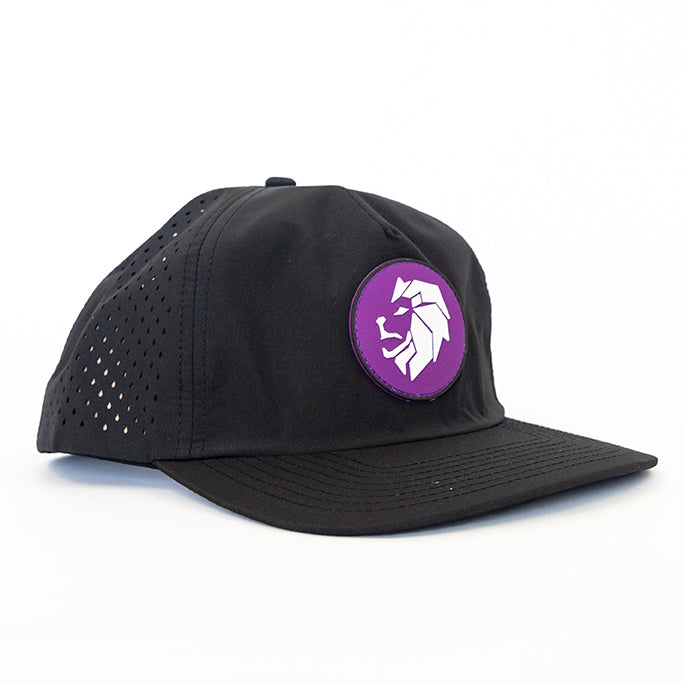 Stay cool while on the course in our modern golf hat. Made with a breathable, moisture-wicking, lightweight fabric. Our unstructured, 5 panel design with a mid-crown profile, and snapback closure for easy adjusting is the perfect hat to keep you comfortable throughout the day. Branded with a PVC Valoure Lion patch on the front, and a small PVC Valoure logo on the left side.