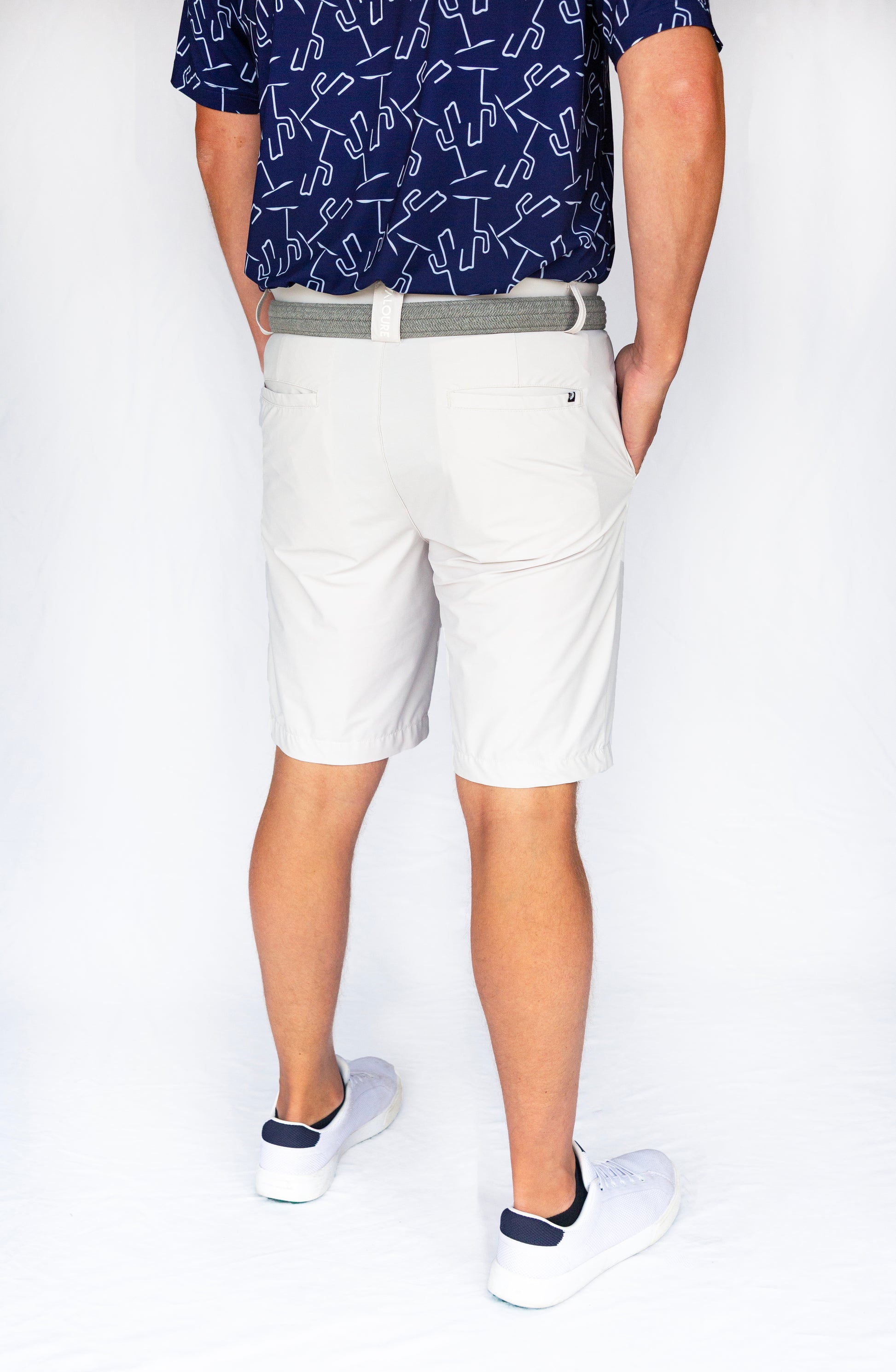 Our Ultimate Performance pull-on short is perfect for on and off the course. Designed to look proper for the club but gives you the ultimate comfort and movement like a classic performance short. Featuring a faux button, working zipper, elastic waistband, and front and back pockets. Made with a lightweight 4-way stretch fabric to keep you cool on those hot summer days.